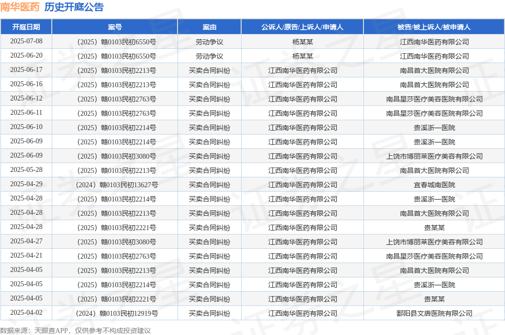 本站消息,根据天眼查APP显示,近日公布了一则江西南华医药有限公司作为原告/上诉人的开庭公告,详细内容如下:
